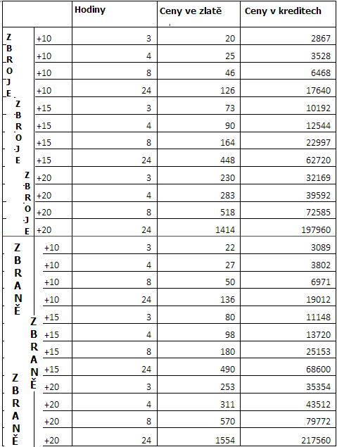 Pronajmout si je možné pouze předměty +10, +15 a +20 úrovní zlepšování.