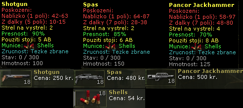 Shotgun je z brokovnic nejslabší. Na soupeře v ochranných vestách se prakticky nevyplácí střelba z "dálky". Poškození kolem pěti bodů zdraví je zanedbatelné. V těsném kontaktu je již zbraň mnohem lepší, samozřejmě nejlépe proti nechráněnému soupeři. Určitou výhodou jsou možné tři výstřely v tahu, ovšem v těsné blízkosti soupeře stojíte opravdu výjimečně (většinou pouze pokud udělá chybu a dokončí tah přímo u vaší postavy:), a tak je obvykle lepší namísto tří slabých výstřelů z dálky, dojít k soupeři a vystřelit 1x či 2x pořádně. Pozor na další slabinu této zbraně, střílí pouze do vzdálenosti pěti polí. Pokud nemáte jinou zbraň a dojdete těsně k soupeři, odstřílíte a dokončíte u něj tah, může dojít k zábavné situaci. Soupeř odběhne svých 15 kroků a vy můžete běžet s ním. Pokud neudělá protivník chybu, nepodaří se vám na něj totiž vystřelit - schází vám 1 AB! V konečném důsledku to u dvou protivníků, jedním s G3SG a druhým se shotgunem, může skončit zajímavou honičkou, kdy ani jeden nebude schopen zbraň použít :)).